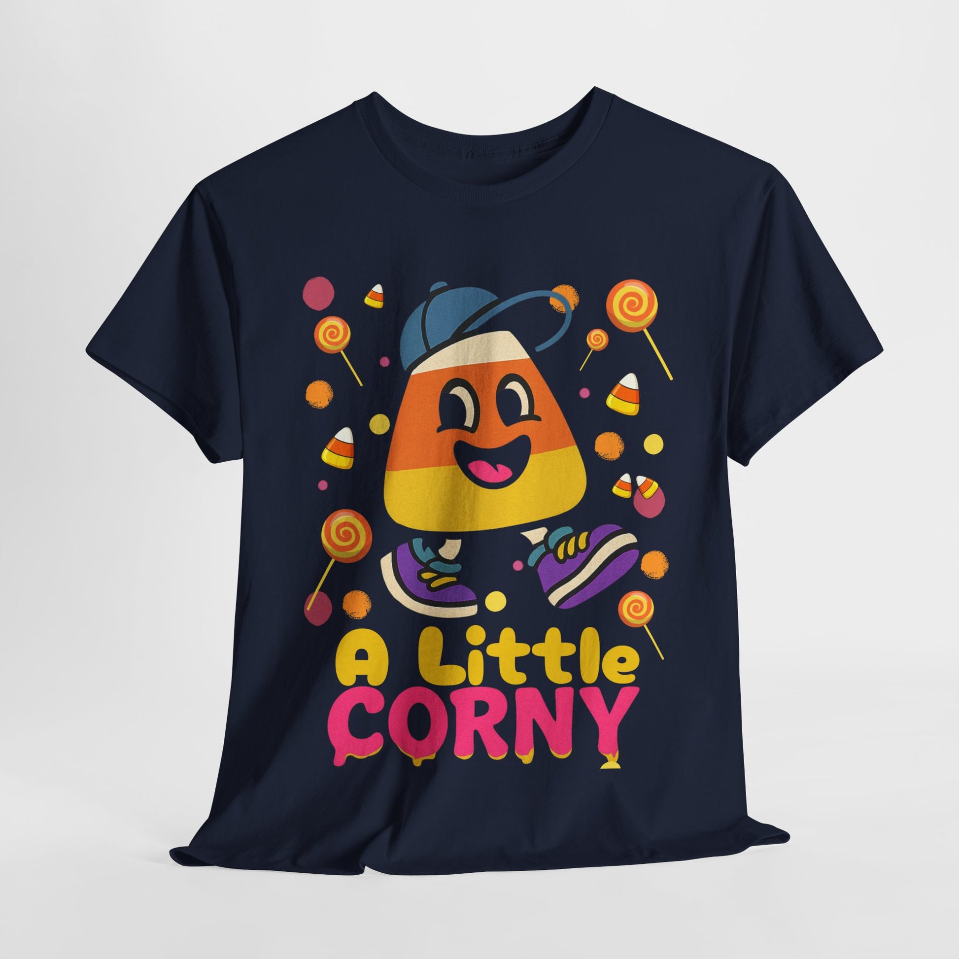 Embrace the 90s vibes with this candy corn short sleeve t-shirt. Perfect for a casual and relaxed look, this unisex t-shirt is ideal for adults looking for a comfortable and stylish addition to their wardrobe. The classic fit and crew neckline make it versatile for any occasion, whether it's a fun Halloween party or a laid-back outing with friends.