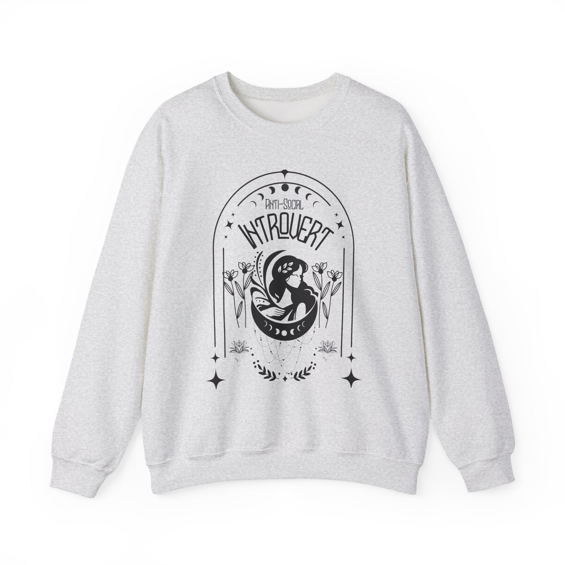 Bohemian Floral Sweatshirt - Vintage Inspired Top, Mystic Celestial Anti-Social Introvert Sweatshirt for Women - Boho Moon Lotus Graphic Pullover