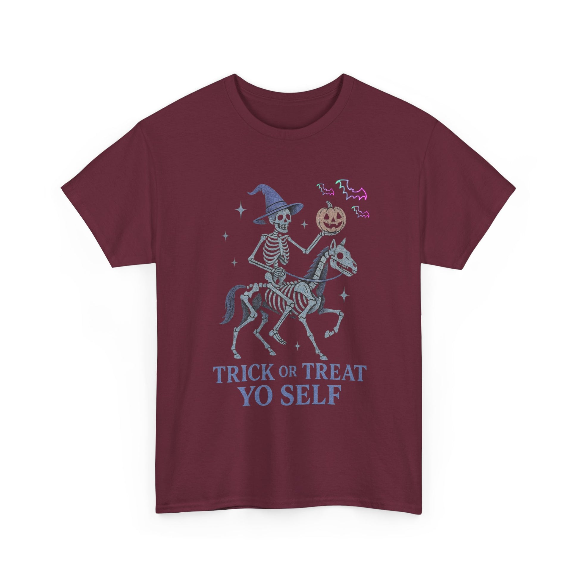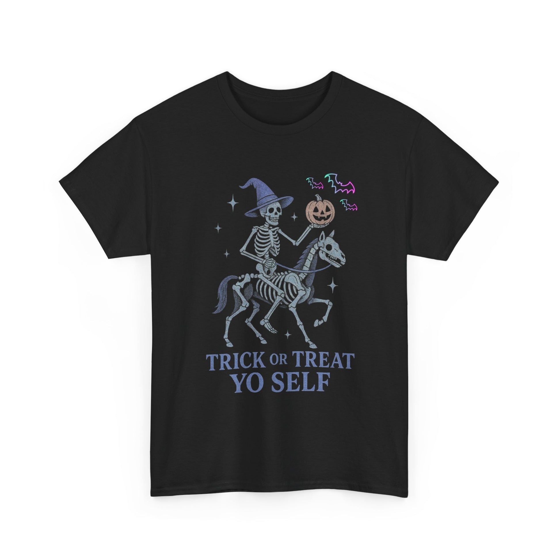 Halloween Skeleton Tee, Funny Halloween Shirt, Unisex Creepy Cotton Tee, Trick or Treat Yo Self Shirt, Halloween Party Apparel