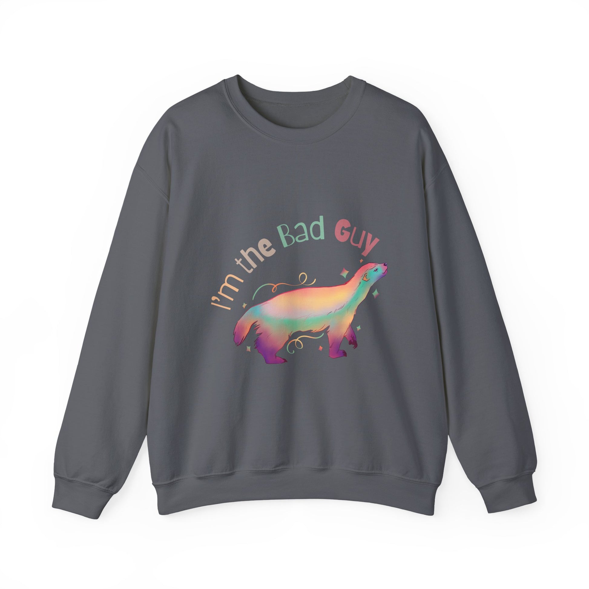 Rainbow Bad Guy Honey Badger Crewneck Sweatshirt | Gift for Animal Lovers, loungwear, Trendy Aesthetic, Birthday Gift