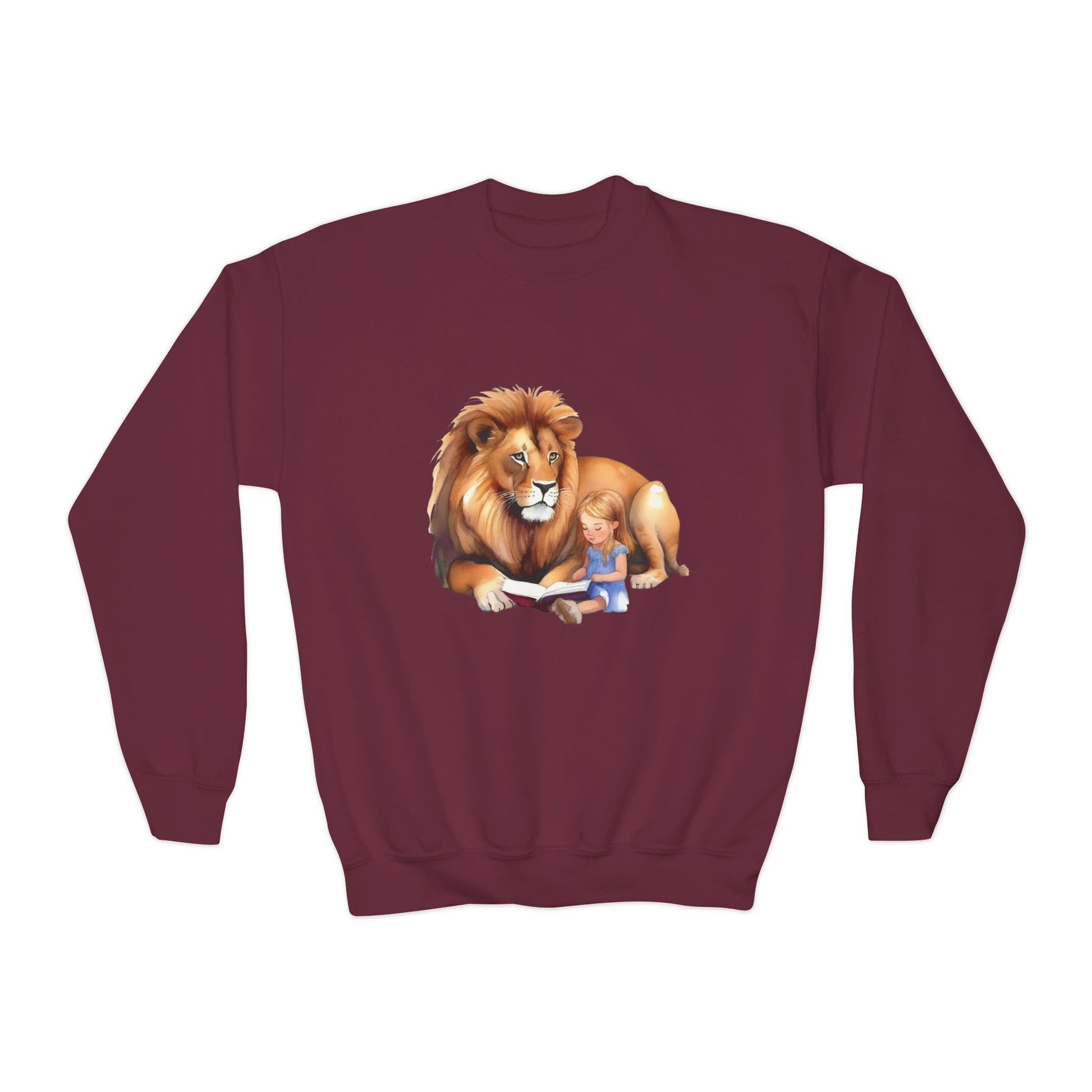 Youth Crewneck Sweatshirt featuring a Lion and Child, Animal Lovers Gift, Kids Sweatshirt, Fun Adventure Apparel, Perfect [...]